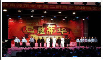 俗话说得好:居高当望远。云南师范大学第二附属中学一直坚持走质量与特色(国际化办学)并举的发展道路,现已发展成为占地220亩,建筑面积4万多平方米,有33个教学班、国内外学生共计1800余人,其中外籍师生50余人的完全中学。