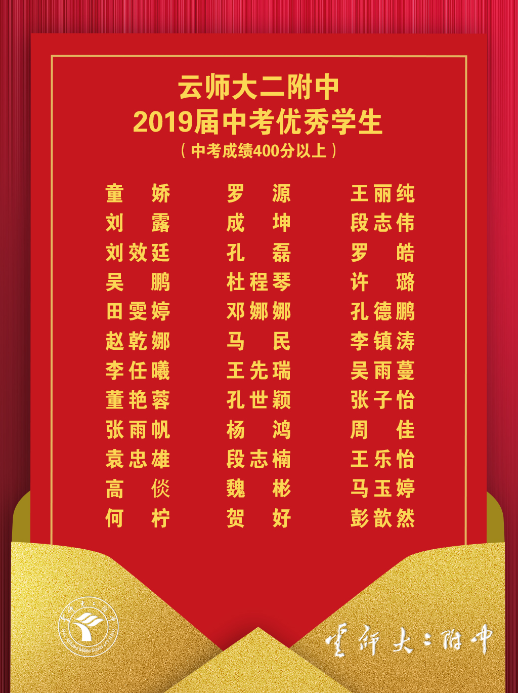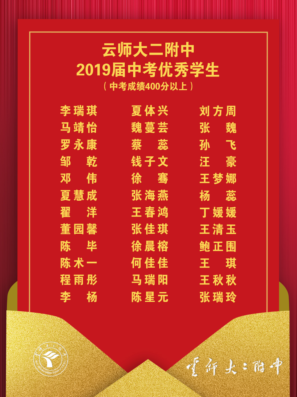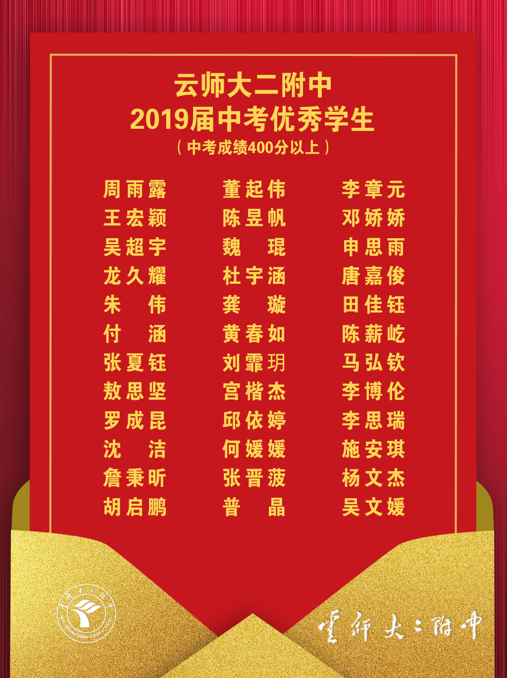 云师大二附中2019届中考喜讯